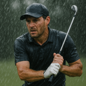 The rain came like a story you’ve heard before: politely at first, then with zeal, then from the side. By the 7th green he was a dark, dripping statue. At the turn he gave in and bought a pair of waterproofs from the pro shop that cost more than his first car. He put them on in a corner with the dignity of a man changing armour. He emerged transformed and made par at the 10th with a grin that could light a boiler room.